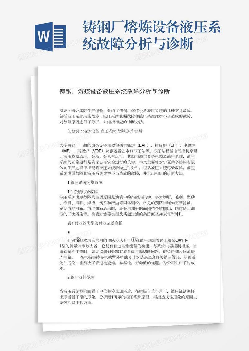 本作品为铸钢厂熔炼设备液压系统故障分析与诊断, 编号:0ayknvy679, 格式为 docx, 大小1 MB, 本作品下载后,先解压,解压之后用推荐软件 Word(2010) 打开, 然后进行编辑功能。