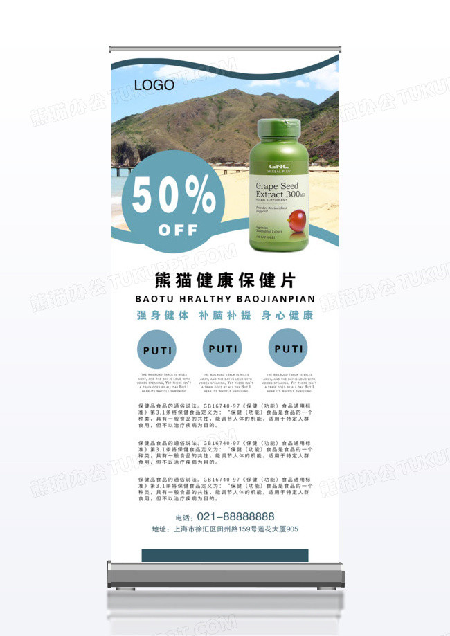本作品为简约绿色大健康保健品促销展架易拉宝, 编号:313eqp2br9, 格式为 psd, 大小67 MB, 本作品下载后,先解压,解压之后用推荐软件 PhotoShop(CC) 打开, 然后进行编辑功能。