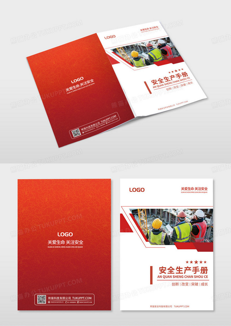 红色创意安全生产手册安全生产画册封面设计封面安全生产画册手册宣传封面