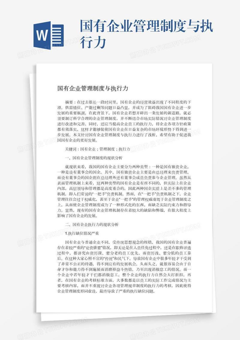 本作品为国有企业管理制度与执行力, 编号:510jgmv5ra, 格式为 docx, 大小1 MB, 本作品下载后,先解压,解压之后用推荐软件 Word(2010) 打开, 然后进行编辑功能。