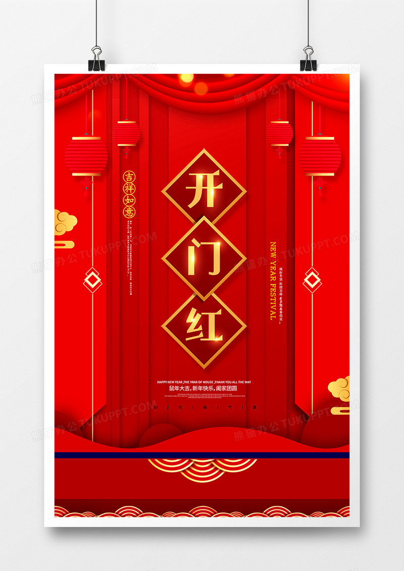 本作品为新年开门红创意主题海报, 编号:5a52qeeo6a, 格式为 psd, 大小41 MB, 本作品下载后,先解压,解压之后用推荐软件 PhotoShop(CC) 打开, 然后进行编辑功能。