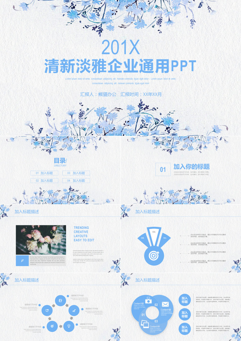 本作品为清新淡雅公司企业汇报通用PPT动态模板, 编号:5k9gww2816, 格式为 pptx, 大小11 MB, 本作品下载后,先解压,解压之后用推荐软件 PowerPoint(2010) 打开, 然后进行编辑功能。