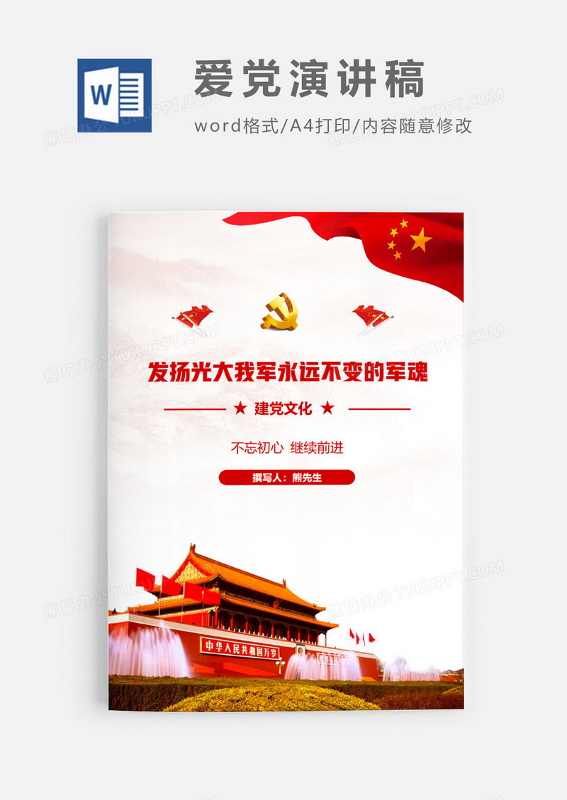 八一建军节发扬光大我军永远不变的军魂演讲稿WORD模板 八一建军节发扬光大我军永远不变的军魂演讲稿WORD模板