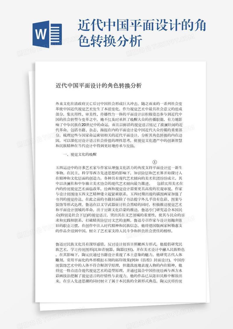 本作品为近代中国平面设计的角色转换分析, 编号:daen7neopa, 格式为 docx, 大小1 MB, 本作品下载后,先解压,解压之后用推荐软件 Word(2010) 打开, 然后进行编辑功能。