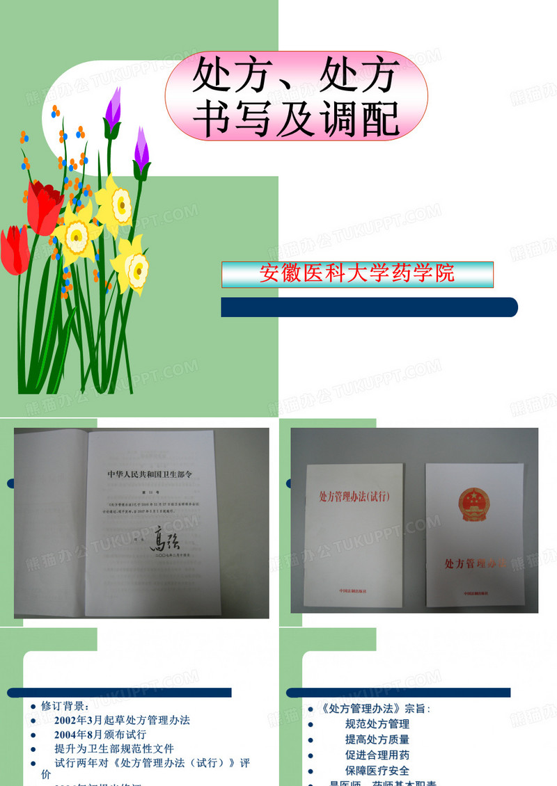 本作品为处方、处方书写及调配, 编号:k1b24w6g81, 格式为 pptx, 大小3 MB, 本作品下载后,先解压,解压之后用推荐软件 PowerPoint(2016) 打开, 然后进行编辑功能。