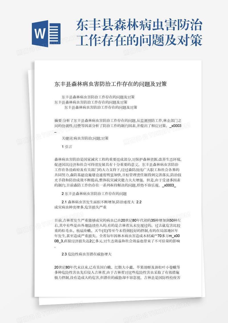 本作品为东丰县森林病虫害防治工作存在的问题及对策, 编号:k1n2m7ydp1, 格式为 docx, 大小1 MB, 本作品下载后,先解压,解压之后用推荐软件 Word(2010) 打开, 然后进行编辑功能。