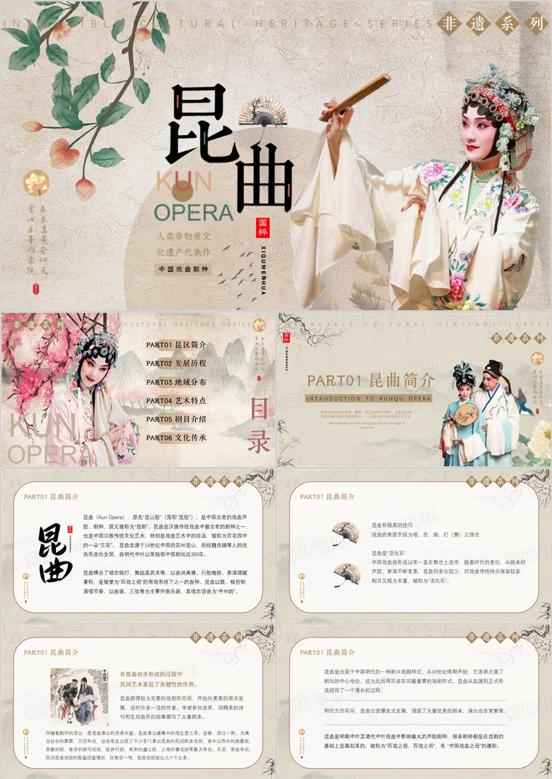 本作品为棕色中国风非遗系列之中国昆曲PPT模板, 编号:k9gwwvjp41, 格式为 pptx, 大小41 MB, 本作品下载后,先解压,解压之后用推荐软件 PowerPoint(2016) 打开, 然后进行编辑功能。