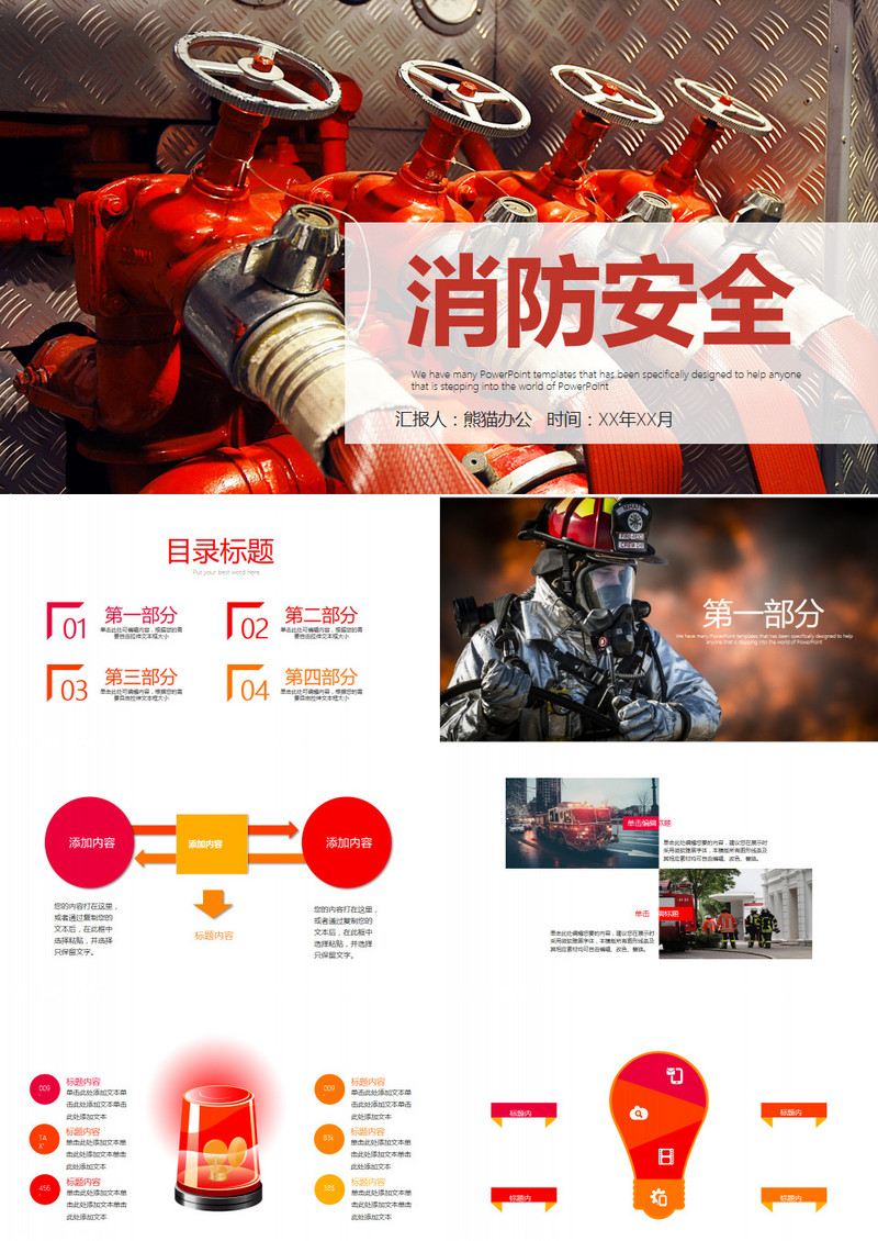 本作品为大气红色消防部队消防官兵总结计划PPT模, 编号:p417o4m29o, 格式为 pptx, 大小8 MB, 本作品下载后,先解压,解压之后用推荐软件 PowerPoint(2010) 打开, 然后进行编辑功能。