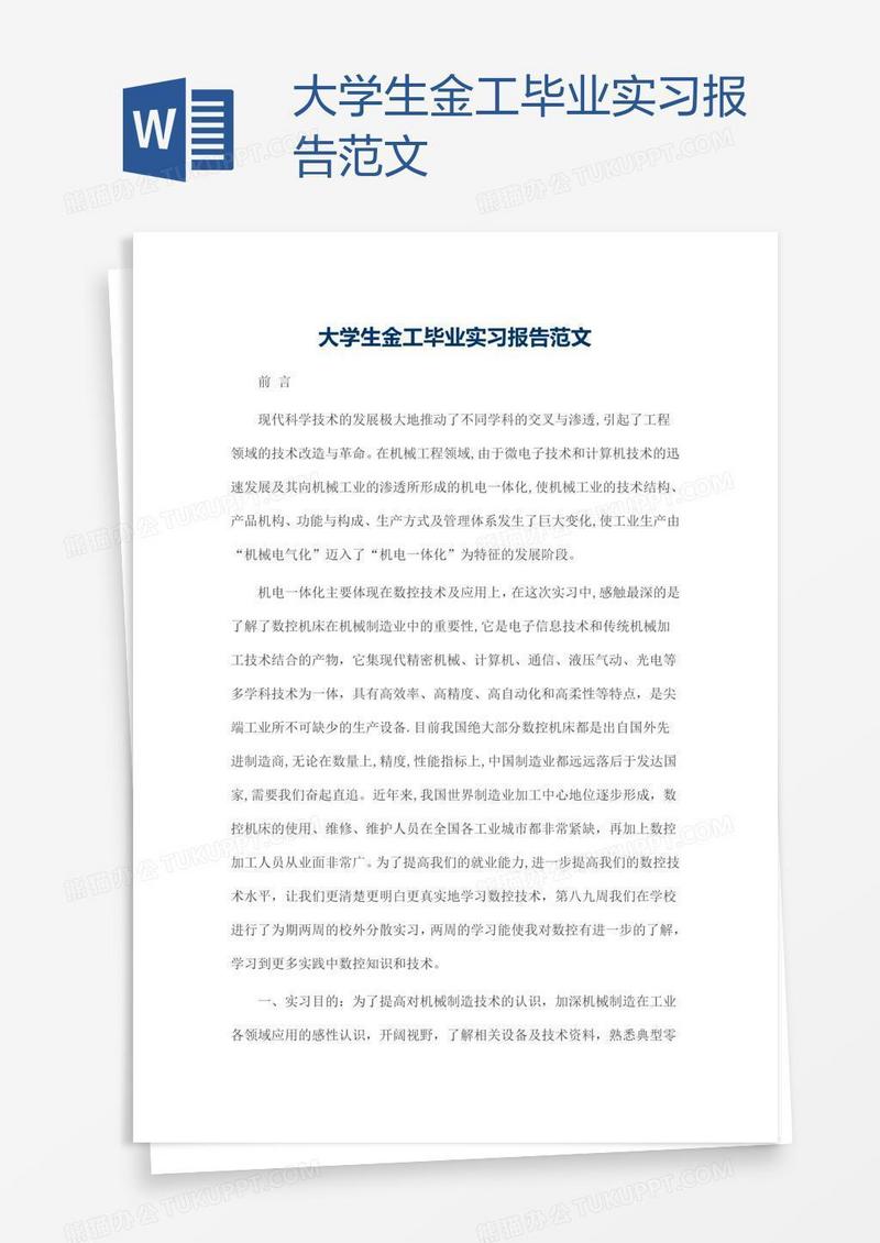 本作品为大学生金工毕业实习报告范文, 编号:r1p3bjle09, 格式为 docx, 大小1 MB, 本作品下载后,先解压,解压之后用推荐软件 Word(2010) 打开, 然后进行编辑功能。