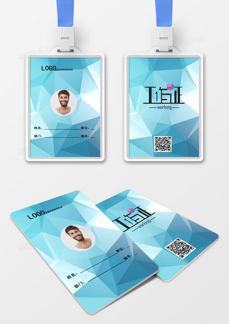 蓝色个性公司员工工作证模版