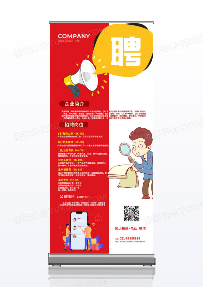 本作品为简约简单卡通人物招聘展架易拉宝, 编号:w9j887lej1, 格式为 psd, 大小13 MB, 本作品下载后,先解压,解压之后用推荐软件 PhotoShop(CC) 打开, 然后进行编辑功能。