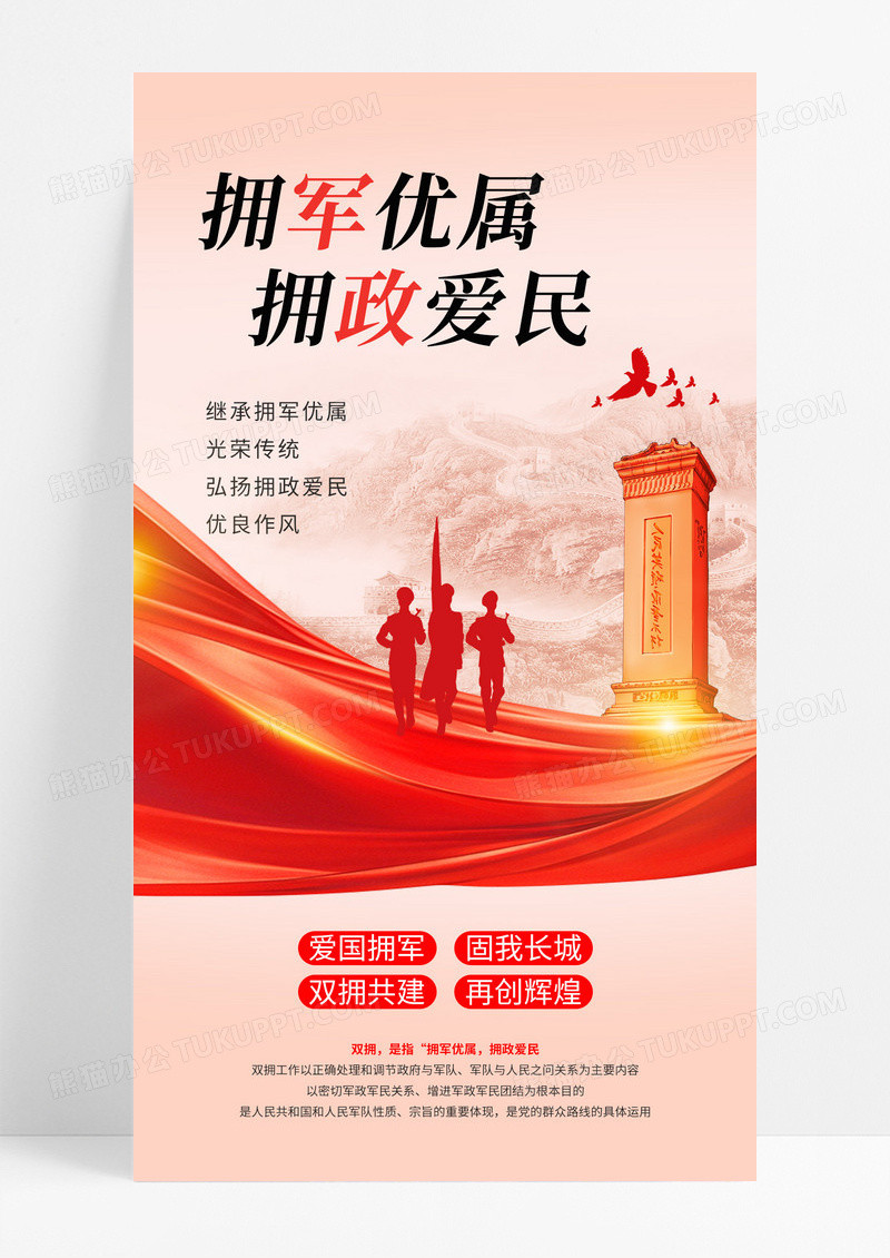 本作品为红色党政拥军优属拥政爱民党政双拥宣传海报, 编号:wav66vw621, 格式为 psd, 大小35 MB, 本作品下载后,先解压,解压之后用推荐软件 PhotoShop(CS4) 打开, 然后进行编辑功能。